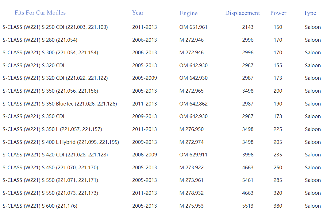 RARELONG Front Air Suspension Spring For Mercedes-Benz S-Class W221 S280 S300 S320 S350 S400 S420 S450 S550 S600 S63 AMG S65 AMG Airmatic Suspension Shock Absorber Repair Kits 2213209313 2213204913 2213209113 2213209213 2213209713 2213209913