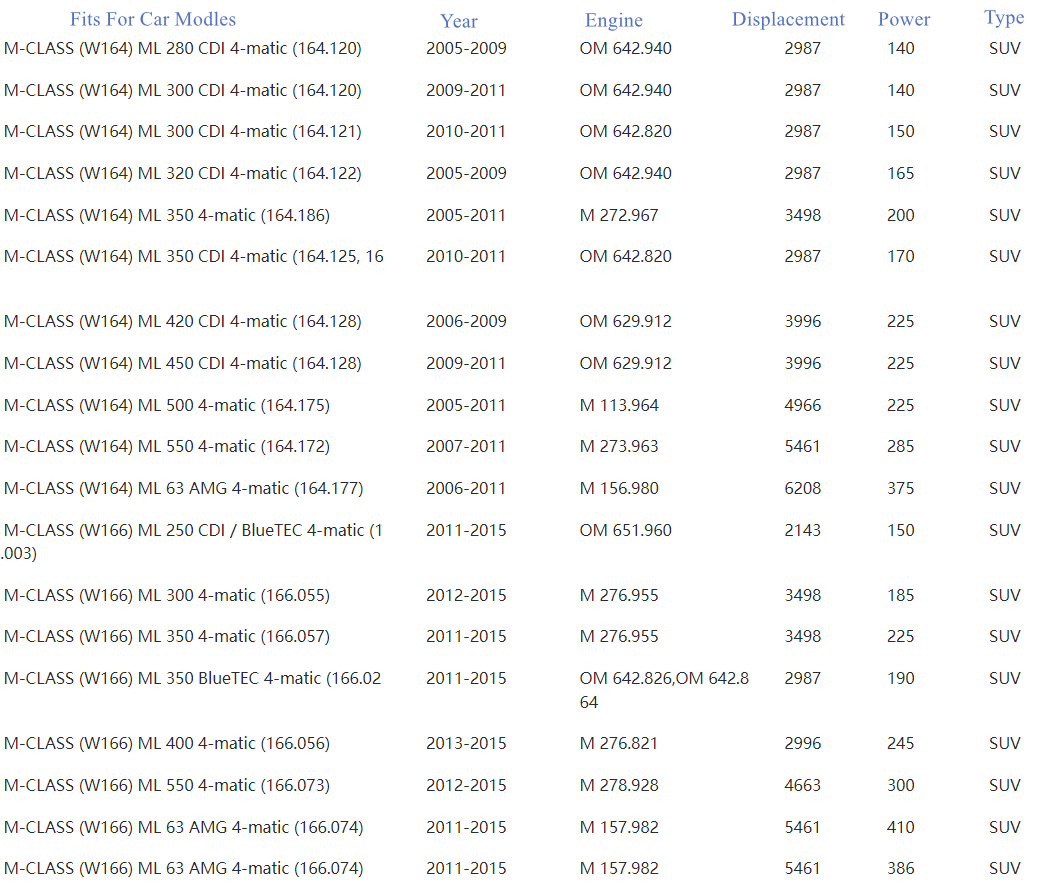 RARELONG Car Airmatic Rear Air Suspension Spring Bags ML For Mercedes Benz M-Class W164 ML280 ML300 ML320 ML350 ML420 ML450 1643200625 1643200225 1643200425 1643200825 1643200925 Fits For Mercedes Benz Car Modles: