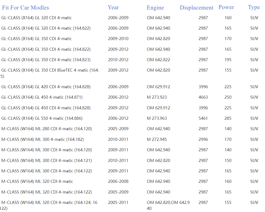 Fits For Mercedes Benz Car Modles: