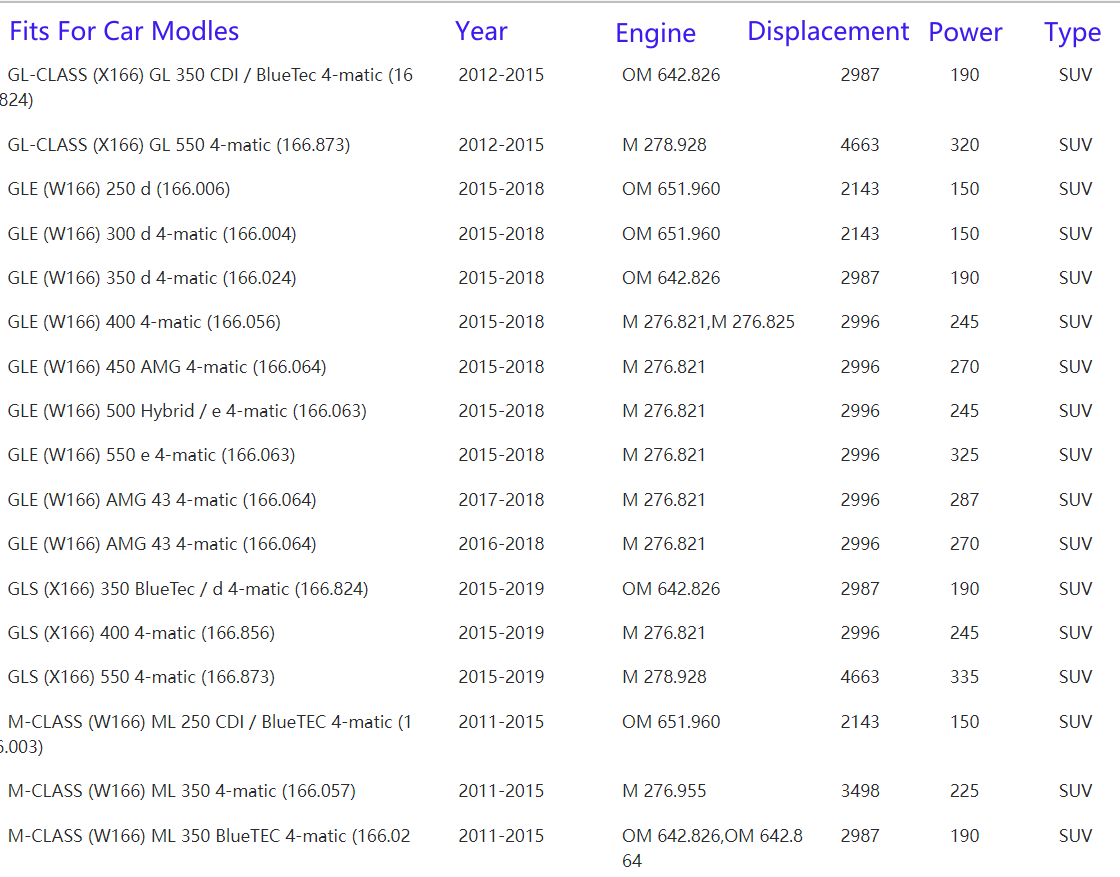 Fits For Mercedes Benz Car Modles: